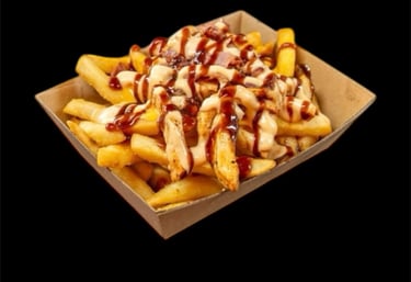 Crispy fries topped with cheese, grilled chicken, beef rashers, cabra special sauce and BBQ sauce.